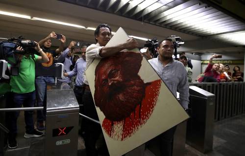 Arropado por unos cuantos integrantes de su equipo, y cargando un cuadro del filósofo y economista Carlos Marx, sin la presencia de elementos policiacos salió por el acceso principal del edificio de la SEP a la estación Coyoacán del Metro, y aseguró que regresaría a Ciudad Juárez, Chihuahua, a retomar sus labores de maestro.