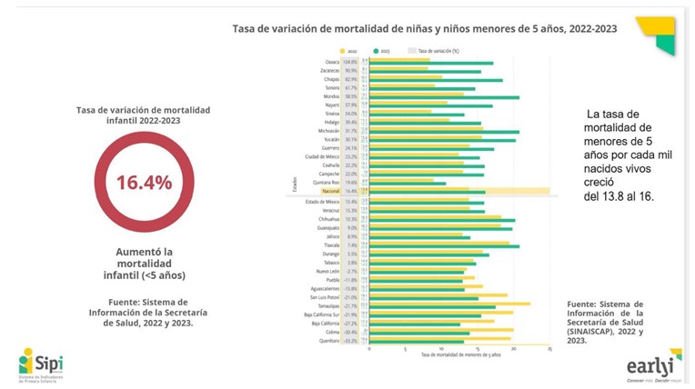 Elaborado por Early Institute y SIPI México, el informe: “¿Cómo vamos con la primera infancia?”, revela una preocupante situación en México porque a pesar de los avances en la reducción de la pobreza, la mortalidad infantil ha aumentado significativamente (16.4%), mientras persisten las carencias en diversos rubros, especialmente en servicios de salud.