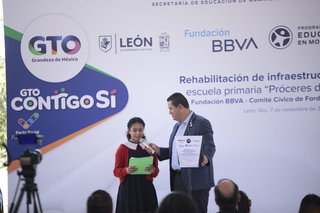 Con el respaldo de la sociedad civil organizada a través de la Fundación BBVA México, el Gobernador entregó obras de rehabilitación en escuela primaria “Próceres de Guanajuato” y en la Escuela Secundaria Técnica #56.