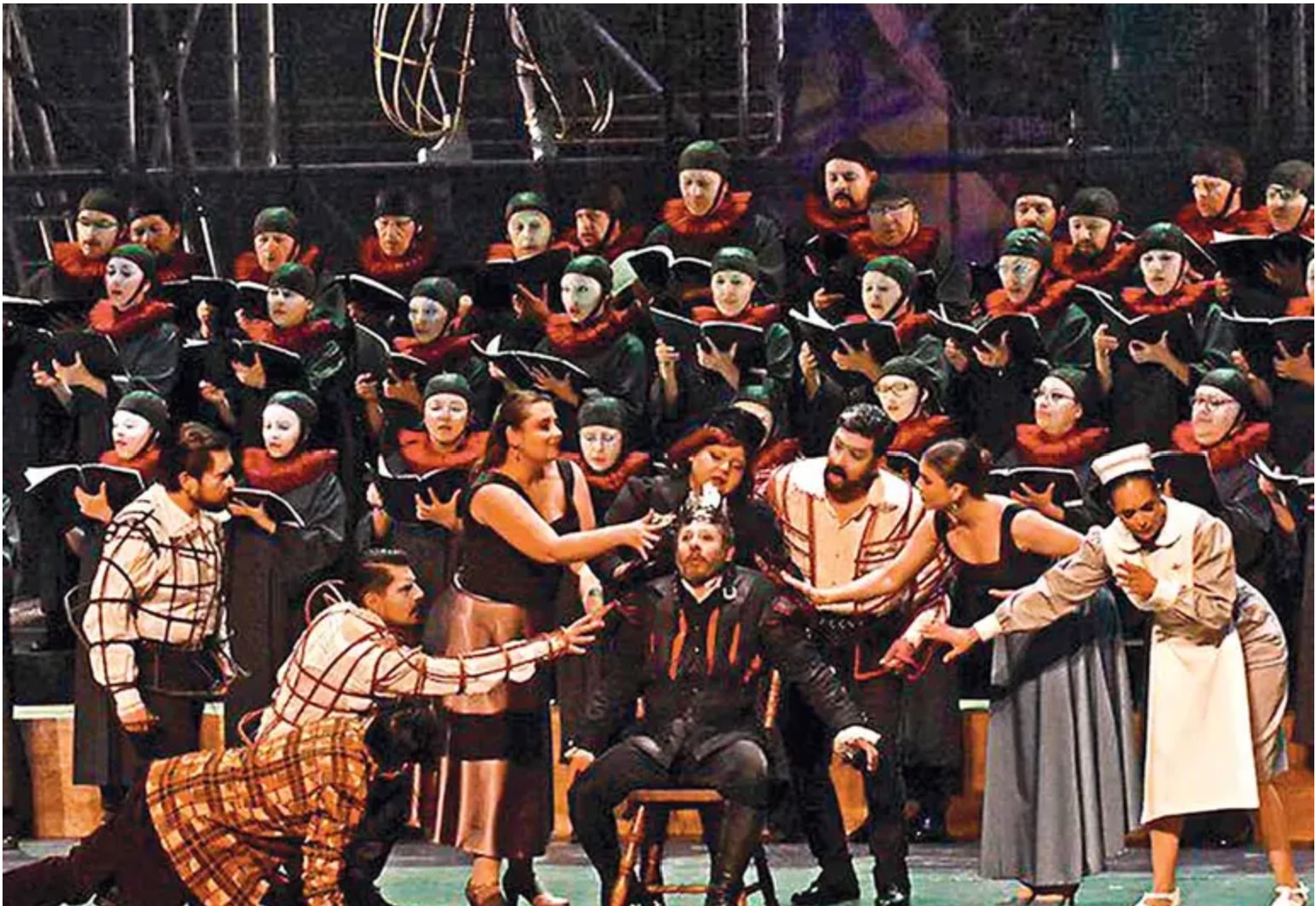 El Coro del Teatro de Bellas Artes, con más de ocho décadas de historia, dirigido aquí por Rodrigo Cadet, actúa como maquinaria mental del Rey. No canta desde el fondo: surge desde dentro. La Orquesta del Teatro de Bellas Artes, bajo la dirección concertadora del maestro Wolfgang Wengenroth, y los pianistas Daniel Cruz y Andrés Sarre, sostienen la tensión invisible del caos.