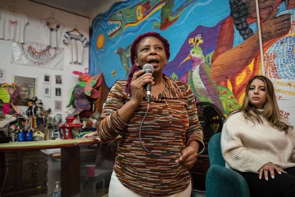 En voz de Bella’D Allacio (March for Our Lives), Odilia Romero (CIELO), Mary José Prudente (Voces de los Pueblos), Cristina Bautista (Madres y padres de Ayotzinapa), Yoloxóchitl Cano (Red de Pueblos Transnacionales), Jorden Giger (Black Lives Matter South Bend) y Marco Castillo (Global Exchange), se abordaron problemáticas como la división que existe entre comunidades de pueblos originarios y afrodescendientes, situación que ha generado no sólo poca efectividad en las luchas por mejorar en los derechos sociales y políticos de cada comunidad sino un alto índice de violencia.
