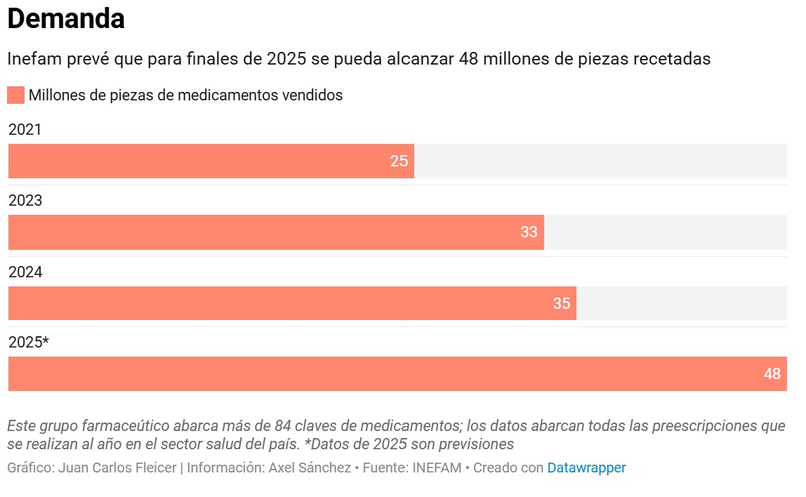 De acuerdo con Inefam, se espera que para el cierre de año se llegue a un total de 48 millones de piezas prescritas de medicamentos psiquiátricos, el doble que en 2021, lo que favorece a los laboratorios.