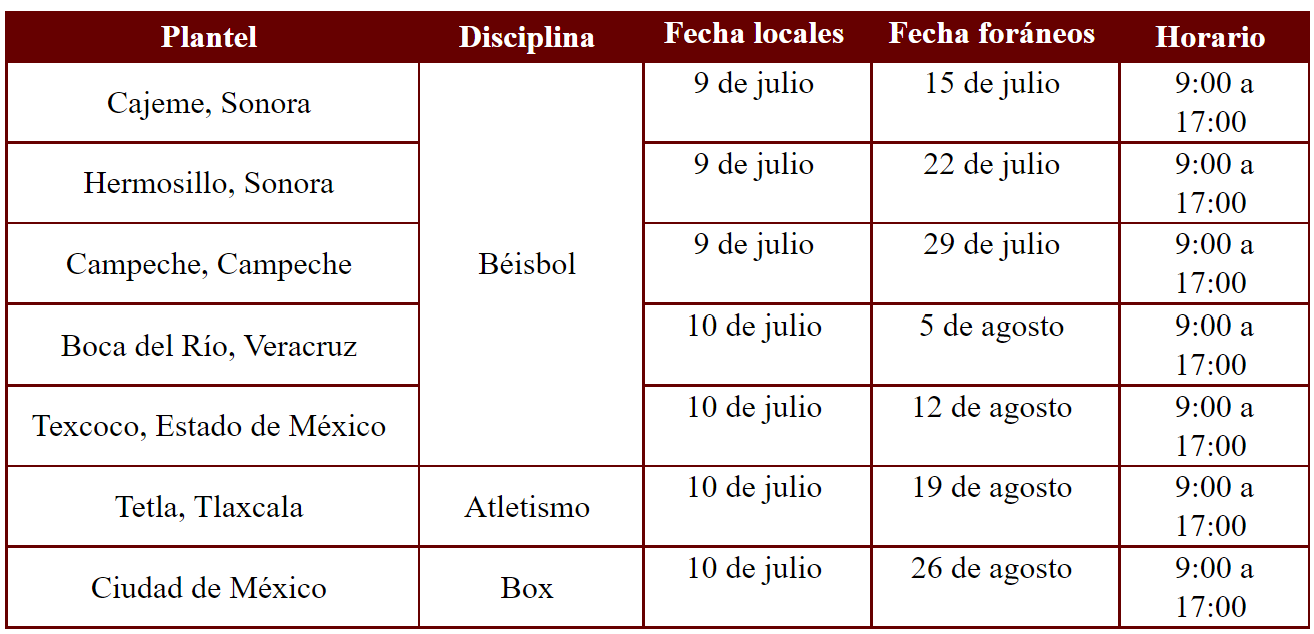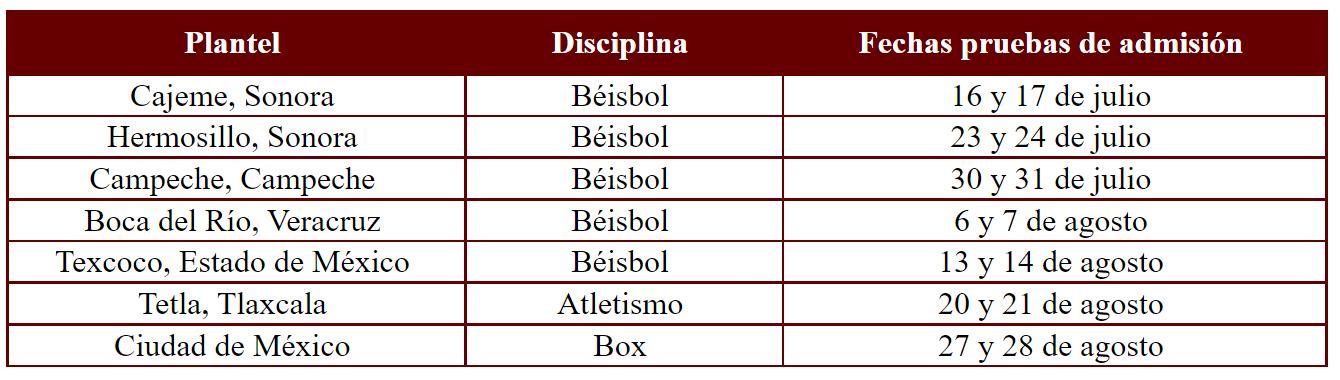La convocatoria señala que la asignación de lugares se realizará sólo entre aspirantes que cumplan los requisitos en tiempo y forma, y la posición final se determinará considerando 50 por ciento los resultados de la prueba deportiva y 50 por ciento el promedio de secundaria ingresado en el prerregistro, mismo que debe coincidir con el documento probatorio de estudios de secundaria.